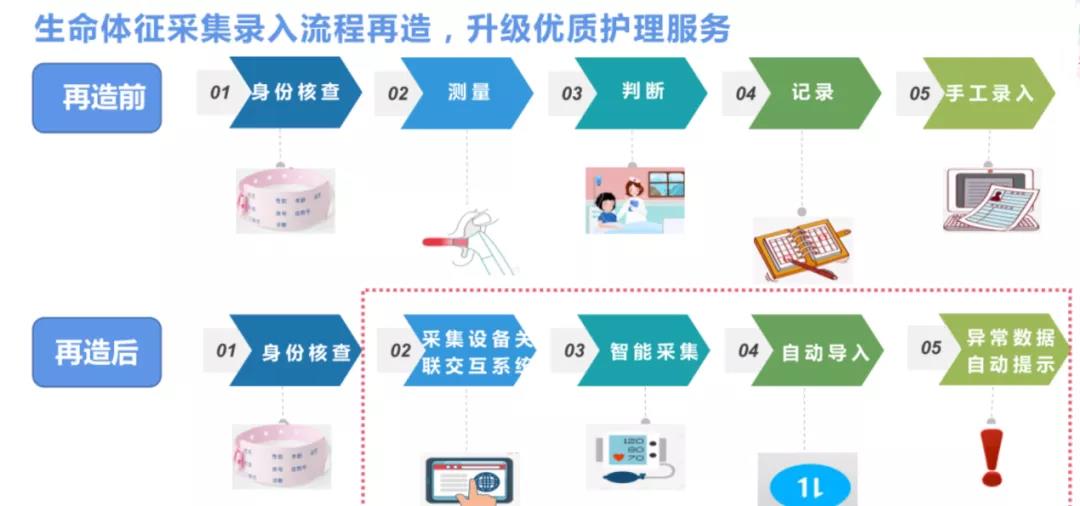 “生命體征采集與錄入”流程就在一些方案的支持下得到了非常方便的再造,其帶來的價值散見于多個醫(yī)院用戶的衛(wèi)生經(jīng)濟學(xué)角度的效果探究。我們期待類似研究多多益善,基于更多的觀察與分析,來共同探索和狀貌這種工作的真實社會價值。