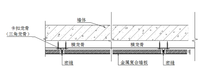 卡扣龍骨采用開模定制的鋁型材,特殊的卡扣結(jié)構(gòu)使得墻板之間緊固,達成表面看不到固件的密拼效果。